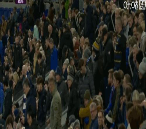 第86分钟,比赛尾声阶段埃弗顿仍0-2落后,部分球迷提前退场
