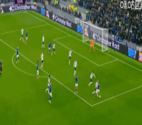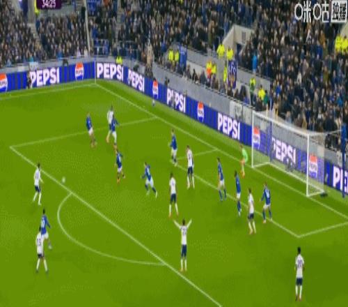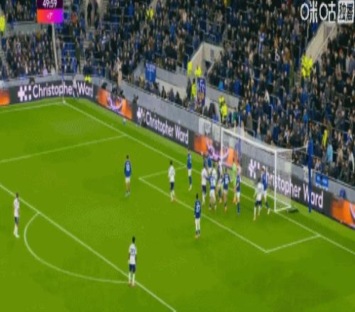 第45+6分钟,波罗开出角球,范德芬头球双响,热刺2-0埃弗顿